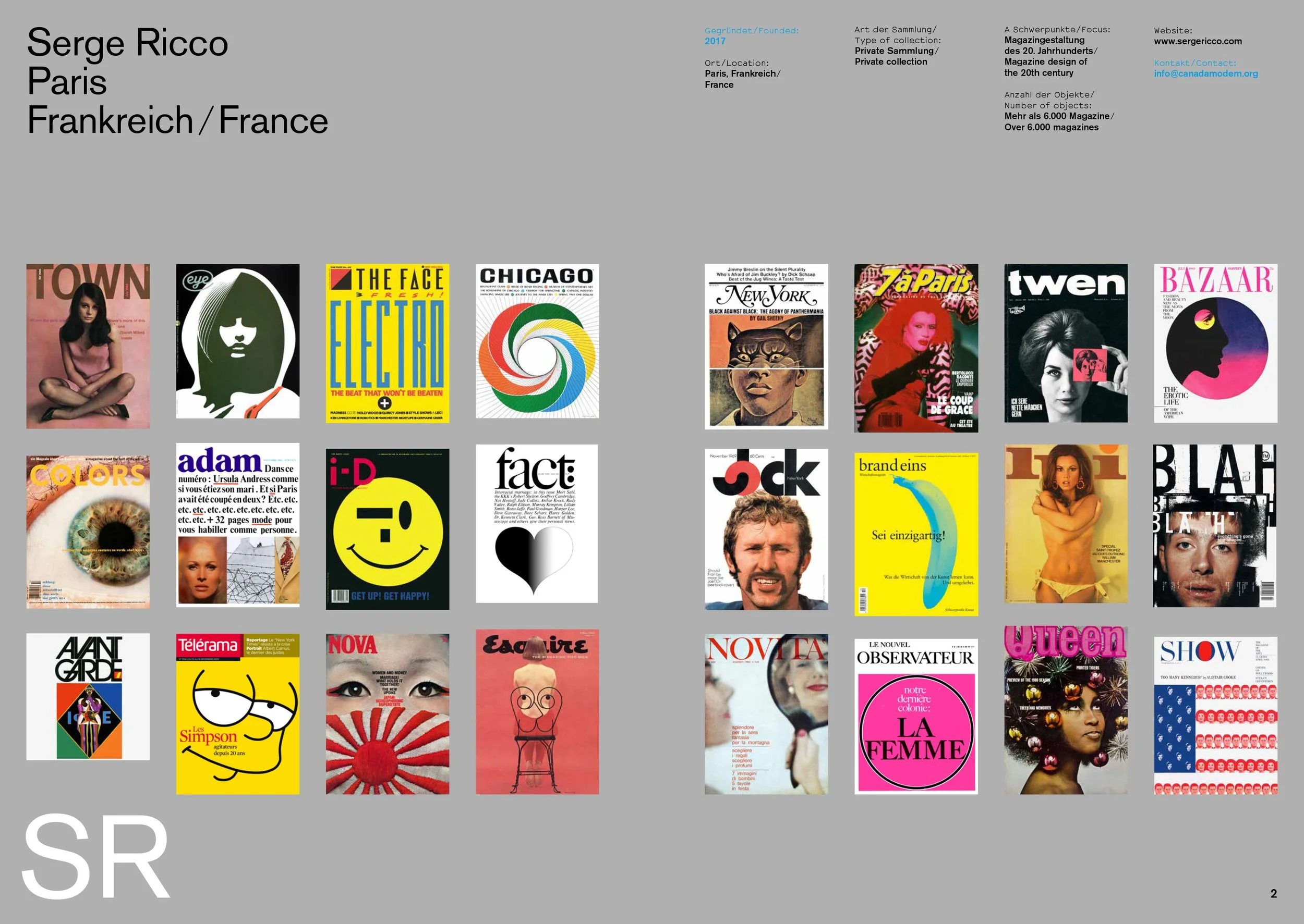 Graphic Design Documentation Center of Aiap · Milan, Italy / Canada Modern · Mono, Ontario, Canada / DNP Graphic Design Archives · Tokyo, Japan / IDA Foundation · Buenos Aires, Argentina / Sammlung Grafikdesign Kunstbibliothek, Staatliche Museen zu Berlin · Berlin, Germany / Letterform Archive · San Francisco, USA / Rochester Institute of Technology · Rochester, New York, USA / Serge Ricco · Paris, France / Swiss Graphic Design Foundation · Winterthur, Switzerland / A5 Sammlung · Düsseldorf, Germany